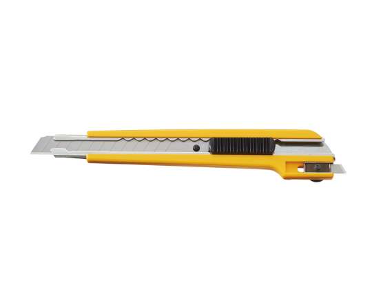 OLFA A-3 9mm-es standard kés / sniccer. Acélházas, automata pengerögzítővel rendelkező vágóeszköz. A markolat végén kialakított speciális tartóba helyezett pengeszelettel, precíz, íves vágásokat is végezhetünk.