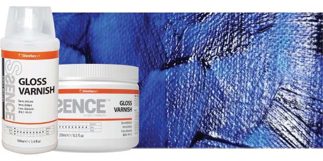 A SSENCE Gloss Varnish fényes felületet biztosít, és nem eltávolítható lakkként használható a felület védelmére és az egyenletes fényes fény megőrzésére. Hajlamos gyorsan száradni, és ha a SSENCE fényes lakkot az akrilfestmény tetejére viszi, akkor teljesen átlátszó lesz, bár homályosnak tűnhet, mielőtt teljesen megszáradna.