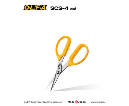 OLFA SCS-4 - Olló. Precíz, pontos vágásokhoz alkalmazható olló. 3,5 cm-es vágóél és kényelmes kialakítású markolat jellemzi.