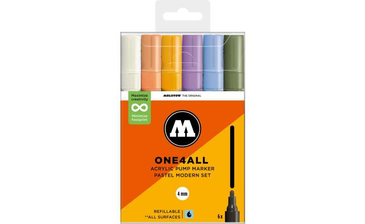 A Molotow ONE4ALL típusú 227HS akril pumpás marker szabványos cserélhető 4mm-es heggyel rendelkezik, és 2024-től 74 színben kapható, s újratölthető. Nagy fedőképességgel rendelkezik, tartós és szinte minden felületen UV-álló. Akár szörfdeszkára, vászonra, hűtőre, graffitire vagy tornacipőre festesz: semmi sem lehetetlen. Nem hiányozhatnak egyetlen művész felszereléséből sem!