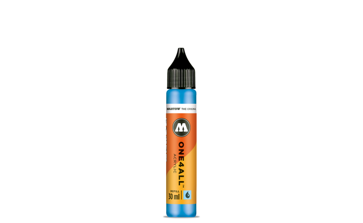 50 különböző színnel a ONE4ALL™ akril festékkészlete a piac legterjedelmesebb akril színskáláját kínálja. Különösen kitűnik a festék azon tulajdonsága, hogy szinte az összes felületen tökéletesen fed. Nem számít, hogy markerrel, ecsettel, pecséttel vagy airbursh pisztollyal használják. A színek UV ellenállók. A 30 ml-es újratöltőpalack tökéletes azoknak akik kicsiben szeretnék elkezdeni. Az újratöltő nem csak a ONE4ALL™ markerhez használható, hanem önálló festőeszközként is használatos.