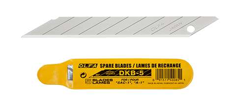 OLFA DKB-5 - 9mm-es standard, hegyesebb tördelhető penge. A következő standard késekhez alkalmazható: SPC-1, S, A-1, A-2, A-3, NA-1, SVR-1 és PA-2.