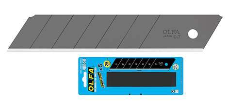 OLFA HBB-5B - 25mm-es keskenyebb élszögű edzett tördelhető penge. A következő standard késekhez alkalmazható: H-1, XH-1 és XH-AL.