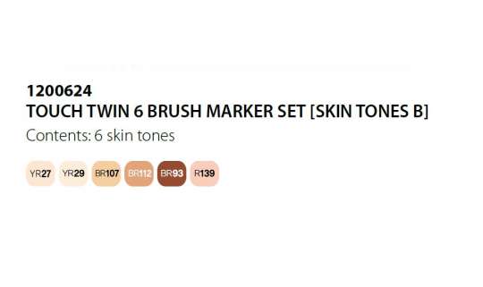 Touch Brush Marker 2 hegyű 6 db-os grafikai filctoll készlet, skin B