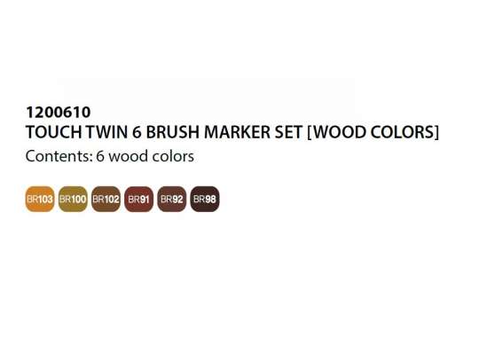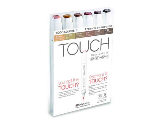 Touch Brush Marker 2 hegyű 6 db-os grafikai filctoll készlet, wood