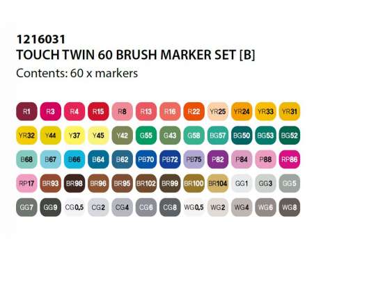 A TOUCH™ Brush Marker egyike a világ vezető márkáinak a markerkek között. Ahogy a „TOUCH™ Brush” név is sugallja, a marker egyik hegye egy renkívül tartós és rugalmas ecsethegy, míg a másik vége egy vágott hegy. Mindkét vég lehetővé teszi a felhasználó számára, hogy nagy területeket színezzen, finom vonalakat hozzon létre, precízen rétegezzen, és elkenődés vagy folyás nélkül vigye fel a tintát. Számtalan ipari tervező, karikaturista, művész és illusztrátor választja világszerte, akik a legjobb minőségű termékeket akarják.