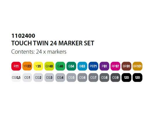 A TOUCH™ Marker egyike a világ vezető márkáinak a markerkek között. Ahogy a „TOUCH™ TWIN” név is sugallja, a marker mindkét végén két kiváló minőségű hegy található. Mindkét vég lehetővé teszi a felhasználó számára, hogy nagy területeket színezzen, finom vonalakat hozzon létre, precízen rétegezzen, és elkenődés vagy folyás nélkül vigye fel a tintát. Számtalan ipari tervező, karikaturista, művész és illusztrátor választja világszerte, akik a legjobb minőségű termékeket akarják.