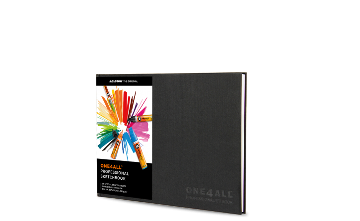 Mindegy, hogy alkohol-, víz- vagy akrilbázisú marker, a magas minőségű ONE4ALL™ vázlatfüzet szinte az összes markerhez kiváló. A kiváló keménykötésű borító mellett egy fekete könyvjelzőszalag és rózsaszín előzéklapok találhatók benne. A borítón egy dombornyomott ONE4ALL™ logo látható. Speciális ANTI BLEED borítás A különleges borítású papír (205 g/m²) garantálja a pontos vonásokat és meggátolja a színek elfolyását, illetve átütését a papíron. A lapok ezáltal mindkét oldalon megrajzolhatók.
