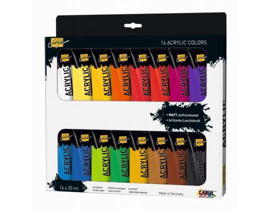 20 ml (White, Citron, Cadmium Yellow, Genuine Deep Orange, Genuine Red, Vermilion, Magenta, Violet, Primary Blue, Ultramarine Blue, Yellowish Green, Permanent Green, Light Yellow Ocher, Gold Ocher, Dark Brown, Black)