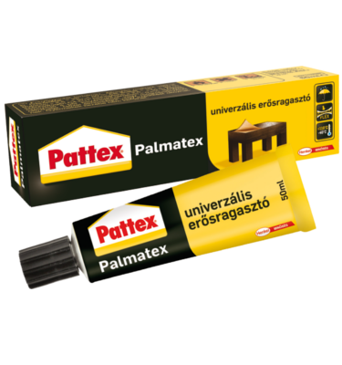 A Pattex Palmetex univerzális erősragasztó a kontaktragasztók leggyakrabban használt ragasztója., rendkívül széles felhasználhatóság jellemzi. Gyorsan és nagyon erősen ragaszt. Könnyen kenhető, szinte minden felület minden felülethez ragasztható vele (nem alkalmas PE, PP, habosított polisztirol – Styropor® – és lágy PVC ragasztásához). Vízálló, a ragasztás ellenáll híg savaknak és lúgoknak.