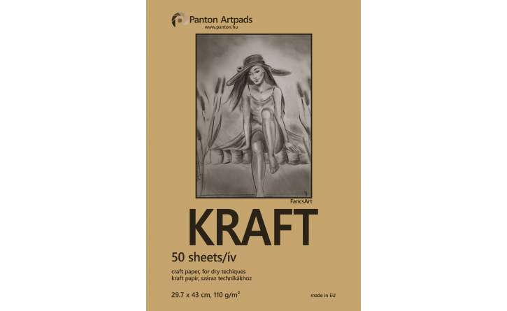 Rövidebbik oldalán spirálozott rajztömb barna kraft papirból száraz technikákhoz. 50 lap/tömb