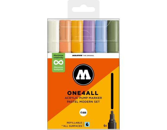 A Molotow ONE4ALL típusú 227HS akril pumpás marker szabványos cserélhető 4mm-es heggyel rendelkezik, és 2024-től 74 színben kapható, s újratölthető. Nagy fedőképességgel rendelkezik, tartós és szinte minden felületen UV-álló. Akár szörfdeszkára, vászonra, hűtőre, graffitire vagy tornacipőre festesz: semmi sem lehetetlen. Nem hiányozhatnak egyetlen művész felszereléséből sem!