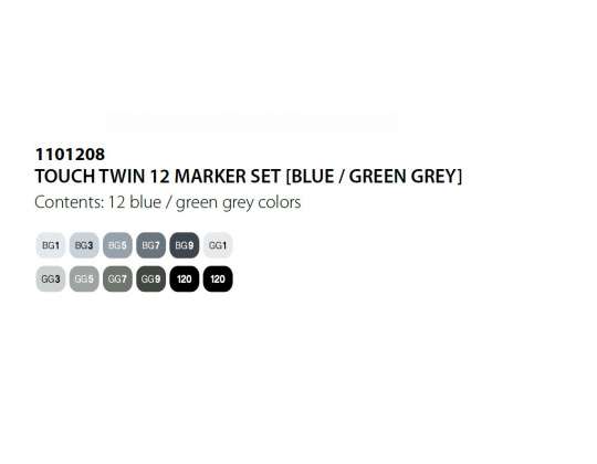 Touch Marker 2 hegyű 12 db-os grafikai filctoll készlet, Blue Grey/Green Grey