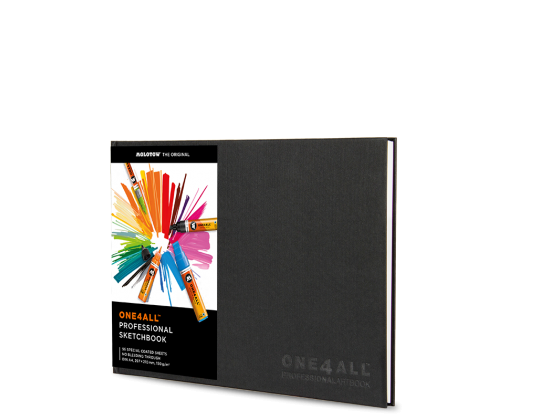 Mindegy, hogy alkohol-, víz- vagy akrilbázisú marker, a magas minőségű ONE4ALL™ vázlatfüzet szinte az összes markerhez kiváló. A kiváló keménykötésű borító mellett egy fekete könyvjelzőszalag és rózsaszín előzéklapok találhatók benne. A borítón egy dombornyomott ONE4ALL™ logo látható. Speciális ANTI BLEED borítás A különleges borítású papír (205 g/m²) garantálja a pontos vonásokat és meggátolja a színek elfolyását, illetve átütését a papíron. A lapok ezáltal mindkét oldalon megrajzolhatók.